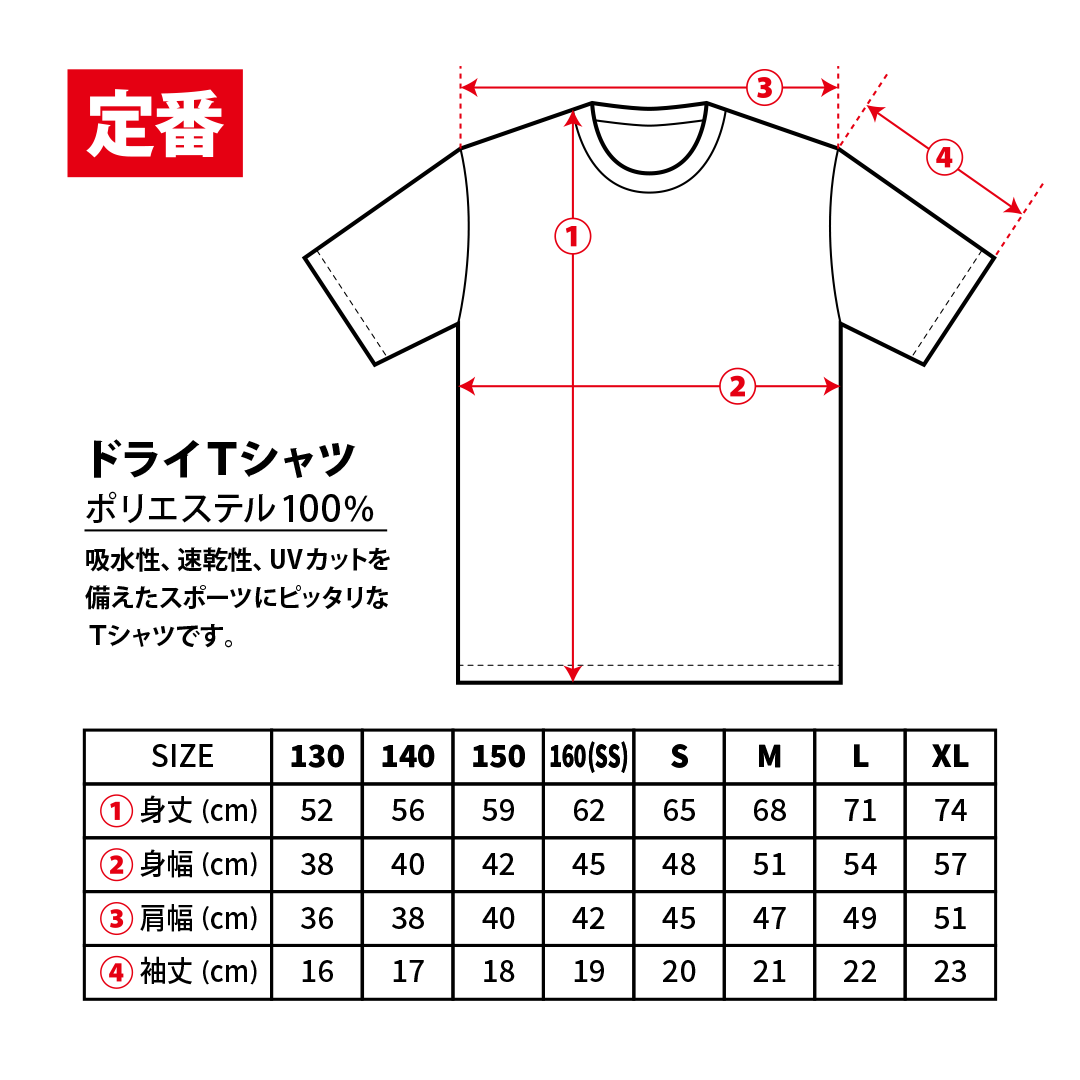 ポリエステル100%の定番ドライTシャツです。